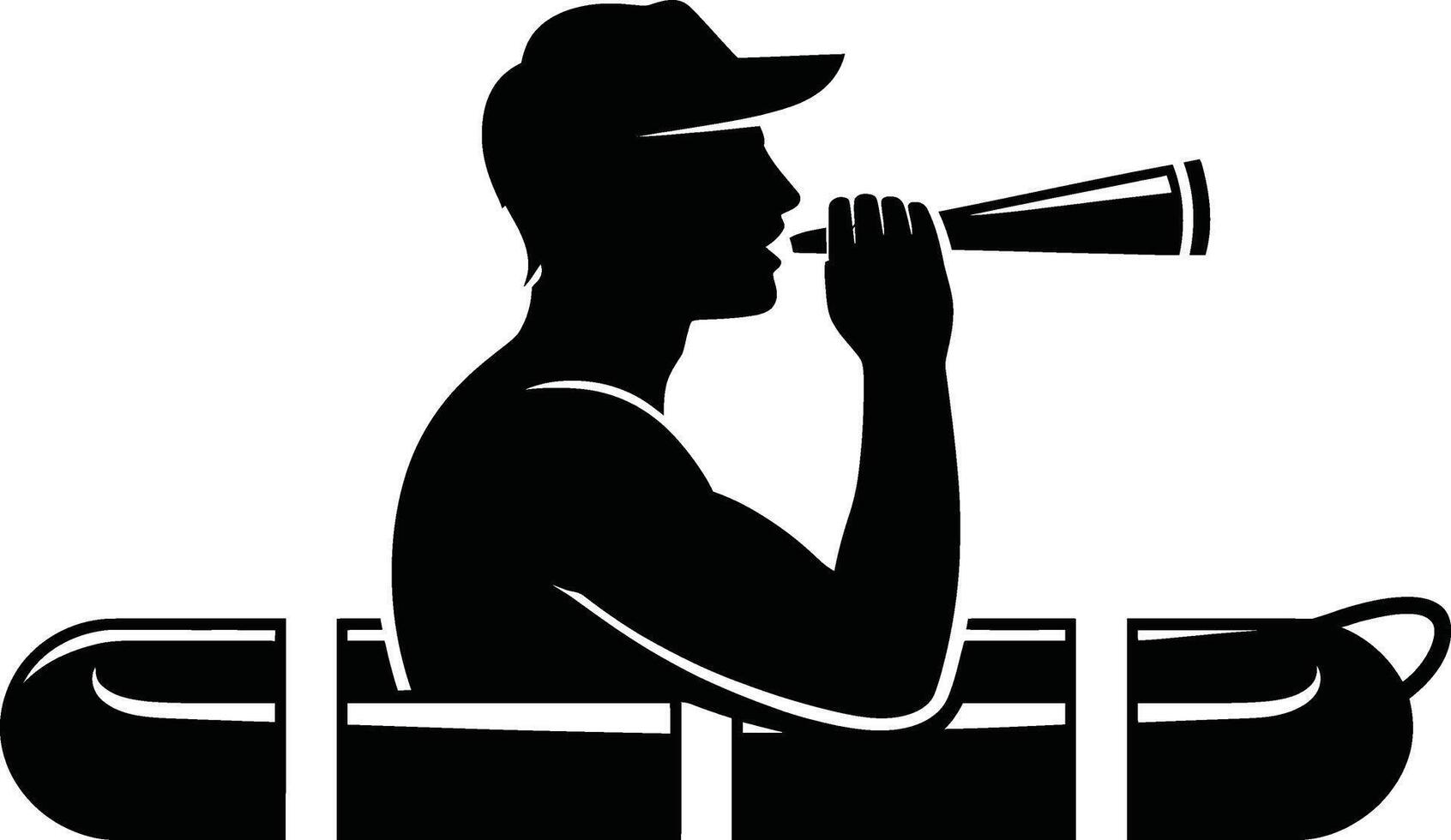 Man in canoe blowing a megaphone announcing a message silhouette Pro Vector