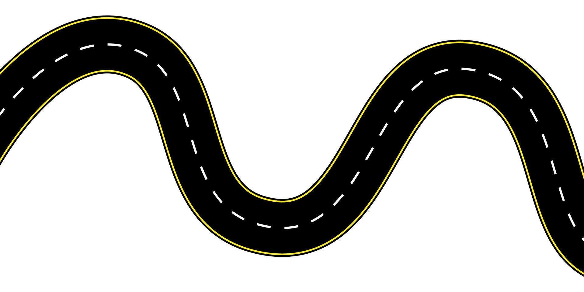 Top view of a winding two lane highway with dashed center lines curved roadway aerial view ideal for map background route illustration highway icon transport journey and empty lane graphics Pro Vector