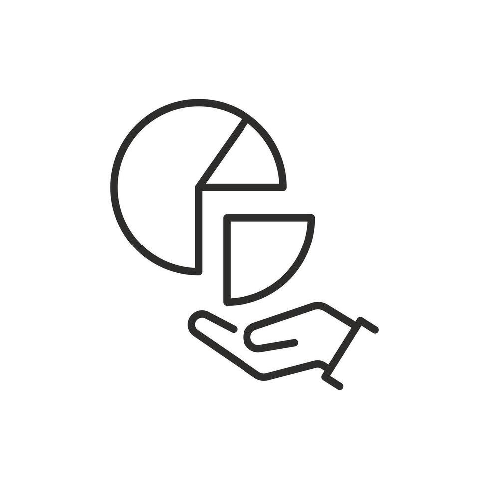 market share icon, pie chart with hand, get your share, business analytics, thin line symbol editable stroke illustration Pro Vector