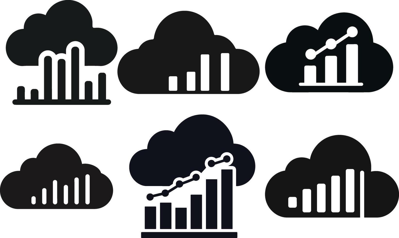 Silhouette of Cloud Computing Icon with Bar Chart Pro Vector