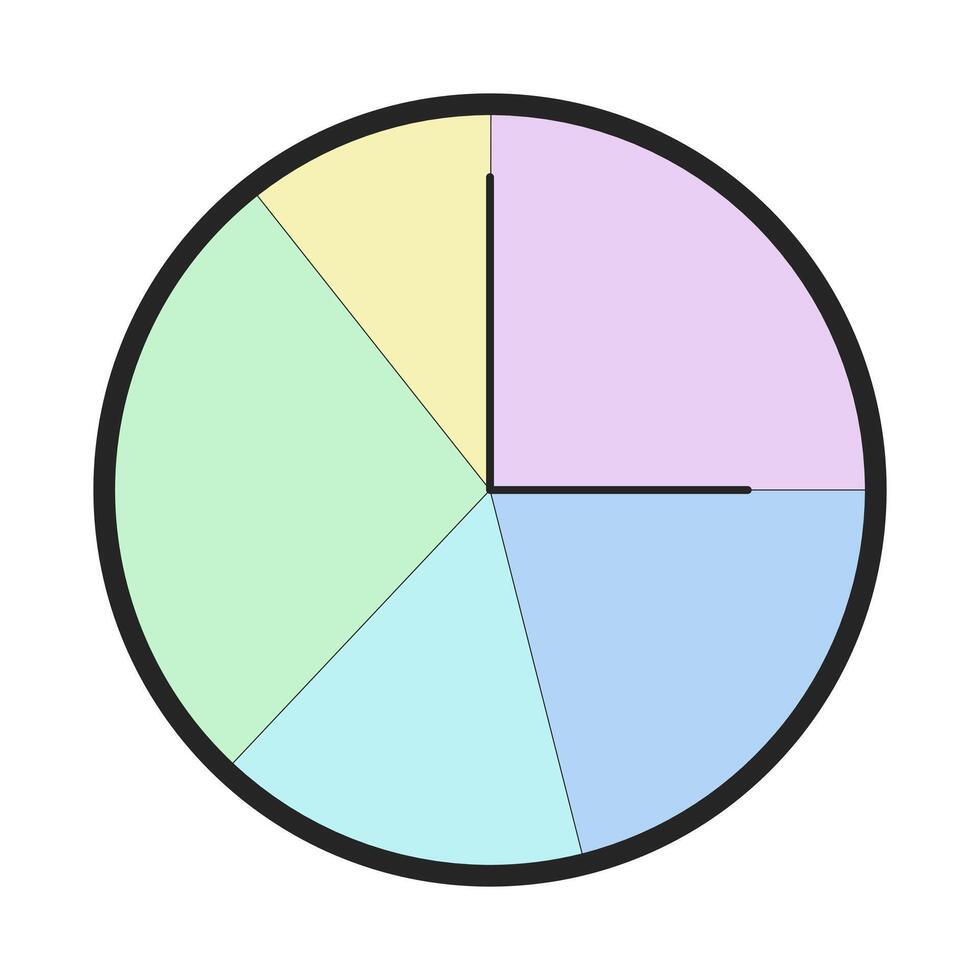Pastel circular clockface with piechart segments 2D cartoon object. Pie chart sections clock. Data distribution. Time representation isolated element flat clip art on white. Spot illustration Pro Vector