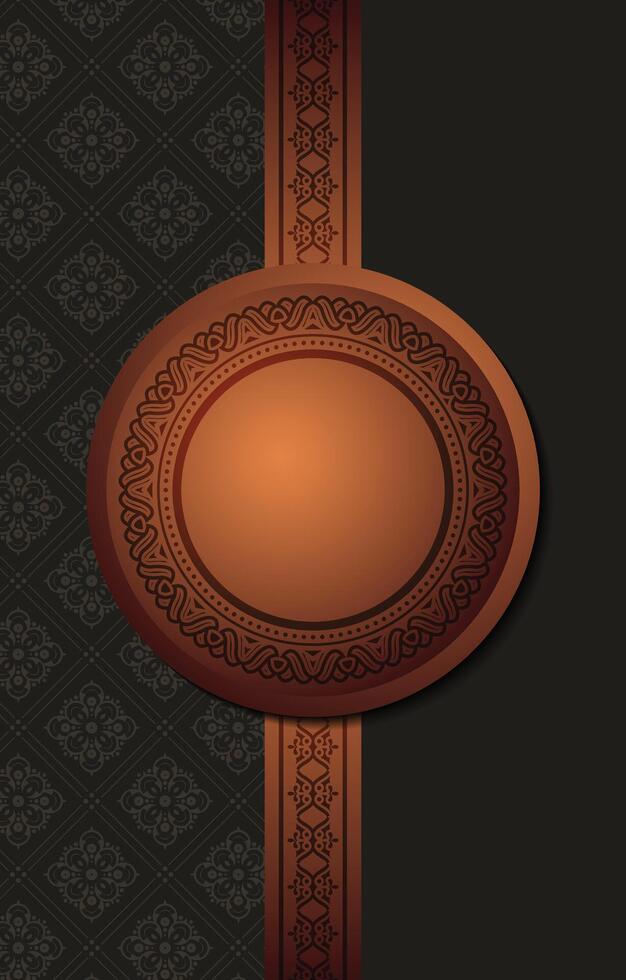Ornate Decorative Circle Frame with Damask Pattern and Ribbon Element Background Pro Vector