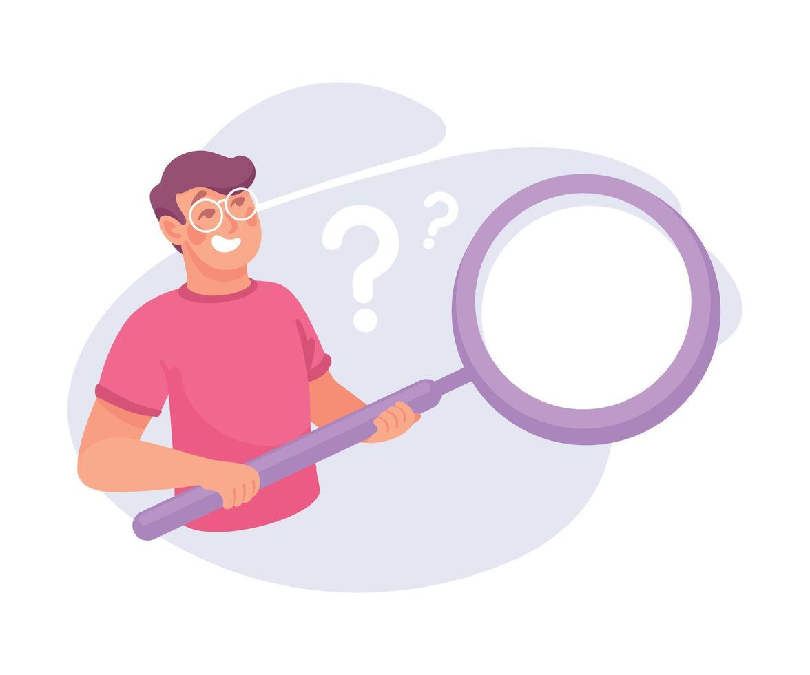 Man with magnifying glass looking at question mark illustration Pro Vector