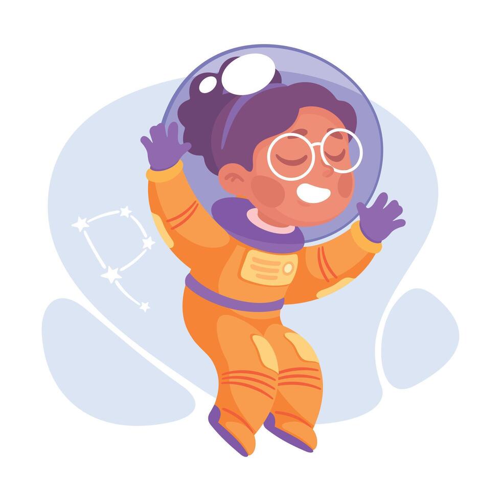 Girl Astronaut Character in Outer Space Exploring Universe Illustration Pro Vector