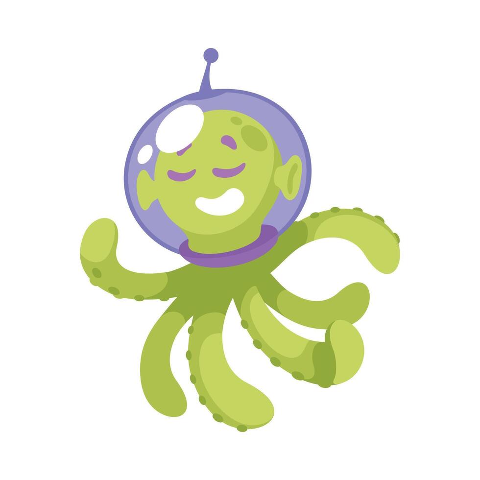 Octopus Alien Astronaut Character in Outer Space Exploring Universe Illustration Pro Vector