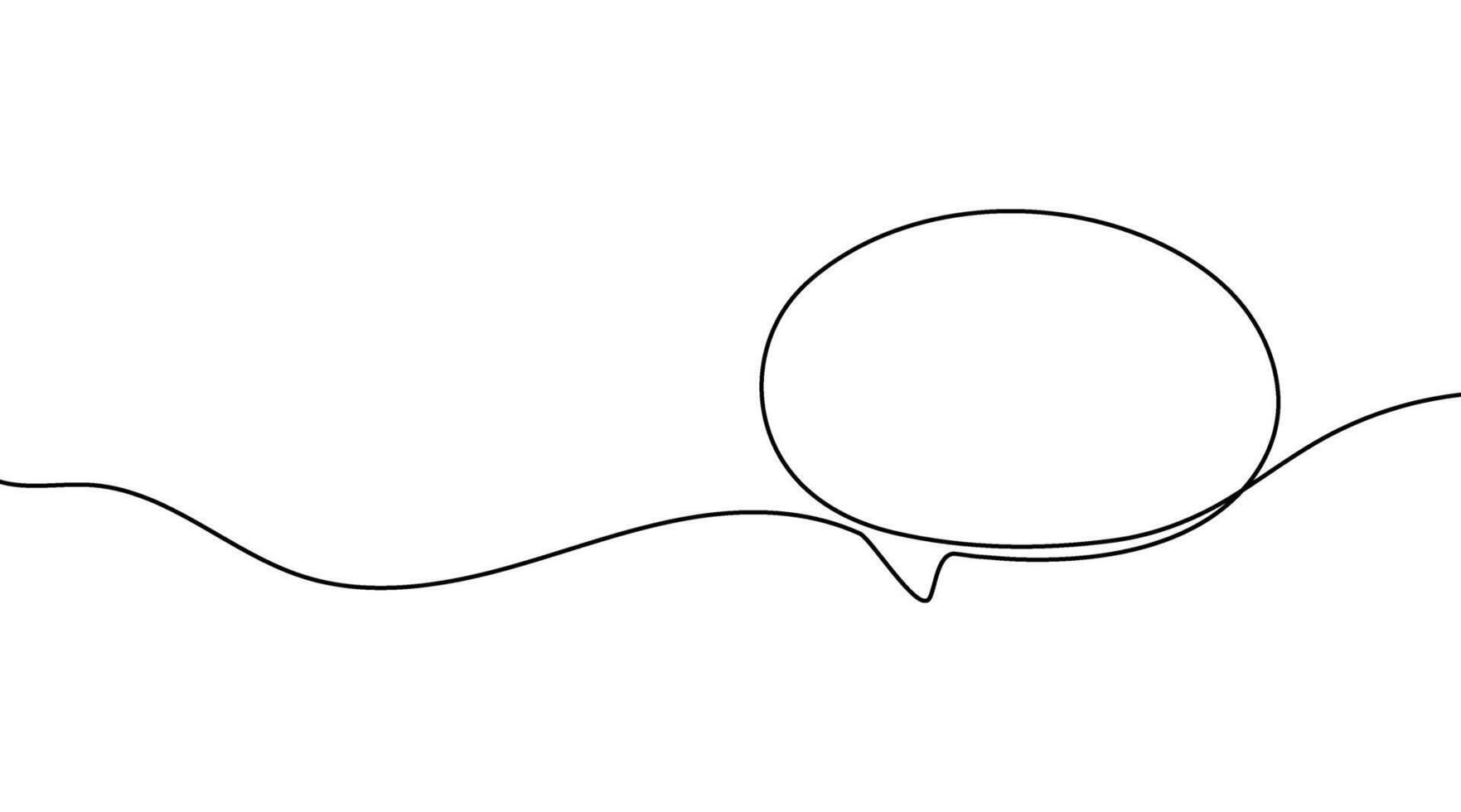 A speech bubble drawn in one line. Minimal icon in simple linear style. Dialogue cloud symbol for chat, message, or comic text box design. Pro Vector