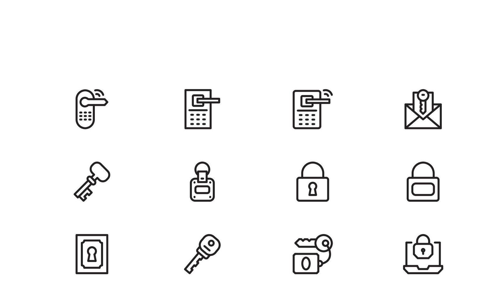 Lock And Security Line Icon Set Modern Minimal Pixel Perfect Keys, Padlock And Safety Line Icon Collection Pro Vector