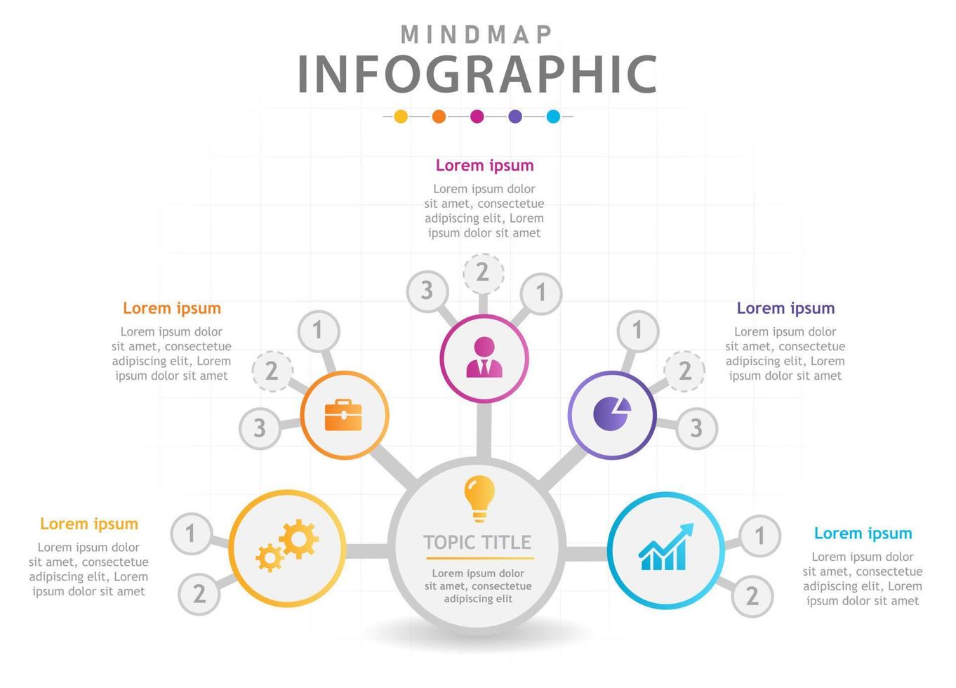 Infographic template for business. 5 Steps Modern Mindmap diagram with circles, presentation vector infographic. Pro Vector