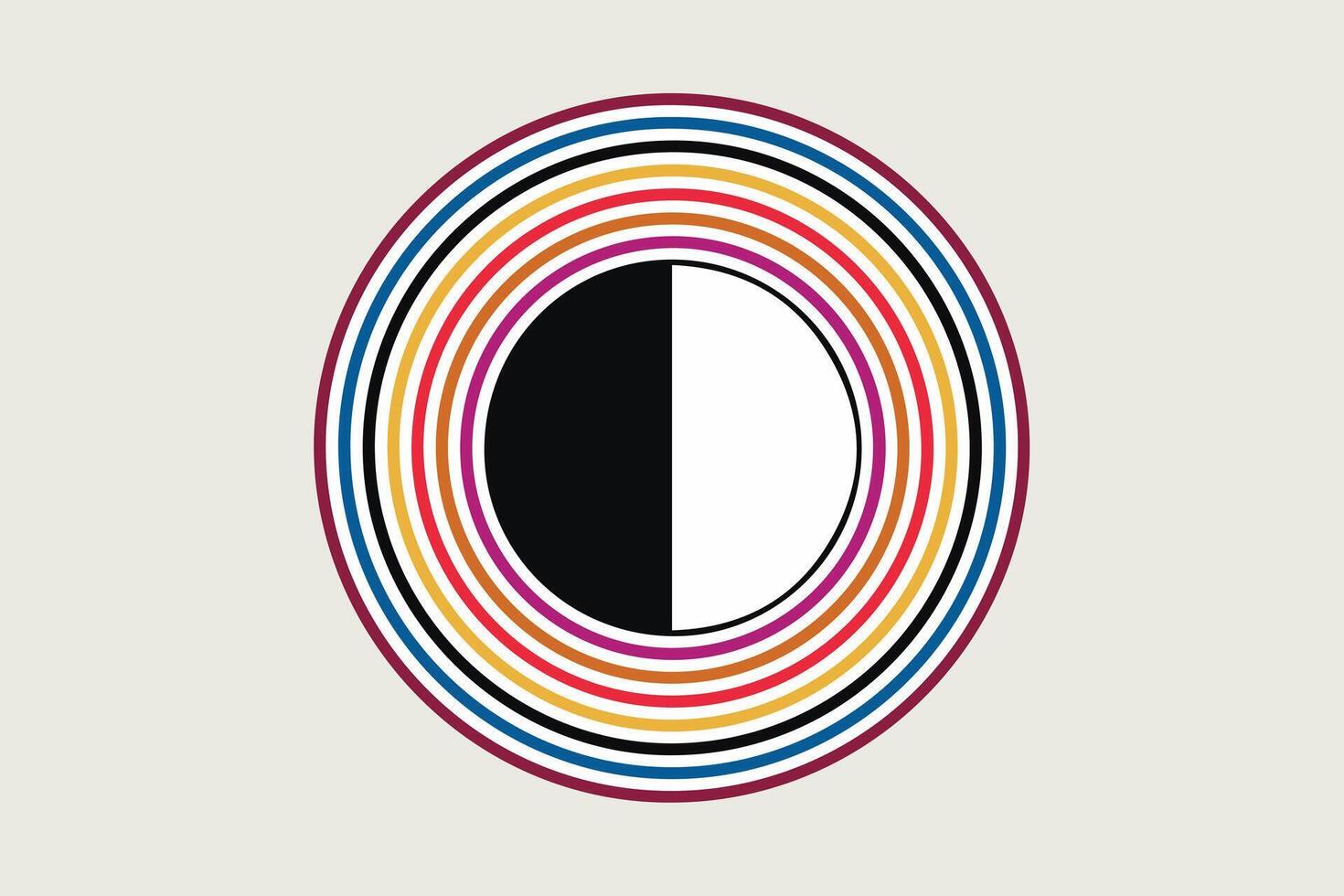 Concentric circles with black and white halves creating a striking abstract design Pro Vector