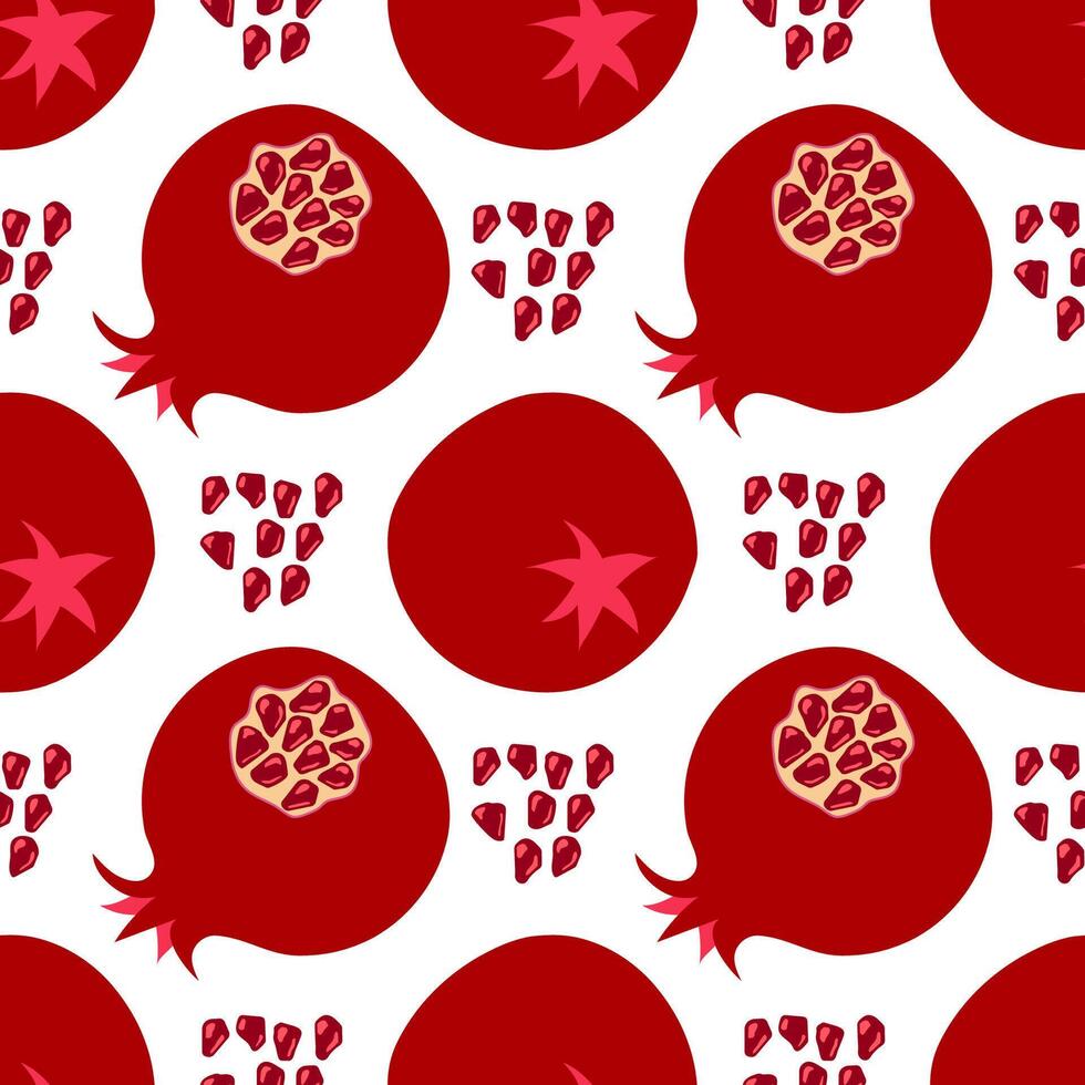Fresh Pomegranate Seamless Pattern Isolated on White Background. Red Fruit and Seeds Texture. Pro Vector