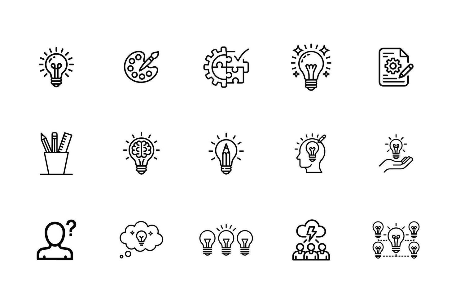 Collection of line art icons representing innovation creativity and problem solving concepts Pro Vector