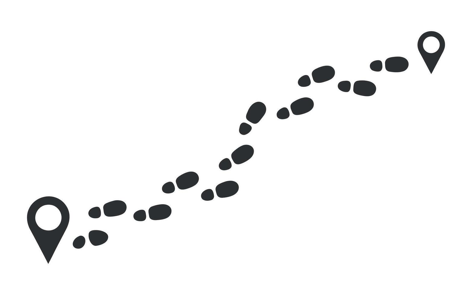Footprints Path with Location Markers on White Background, Indicating a Journey or Route with Navigation Points vector