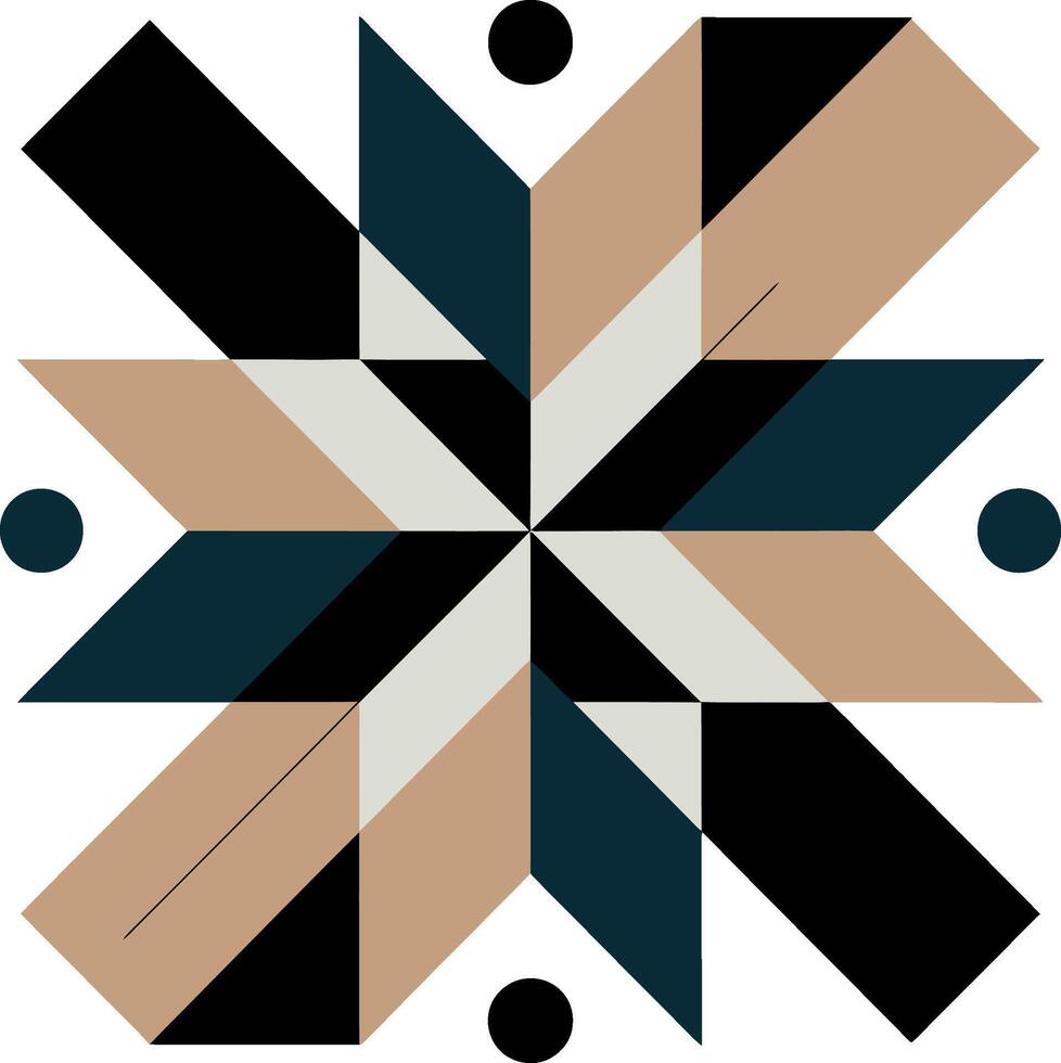 Geometric starburst pattern with black tan and teal shapes abstract Pro Vector