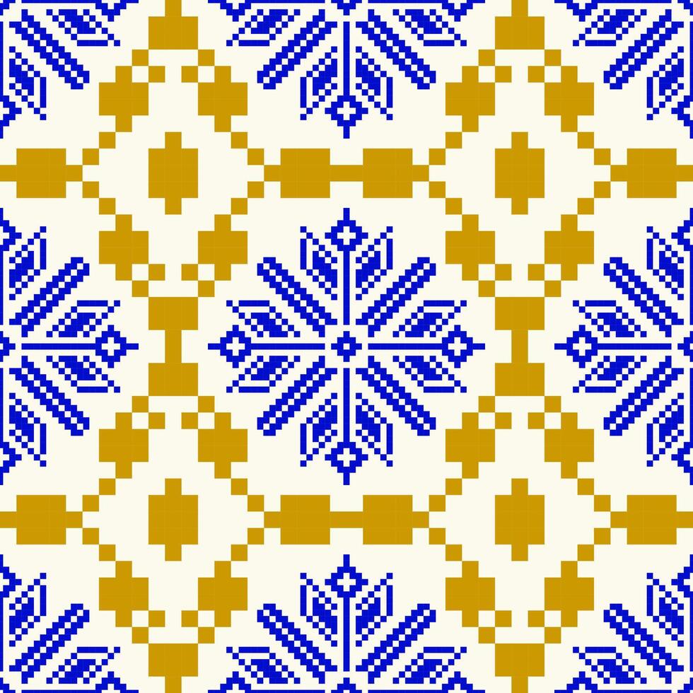 Native fabric pattern in pixel style, seamless design Pro Vector