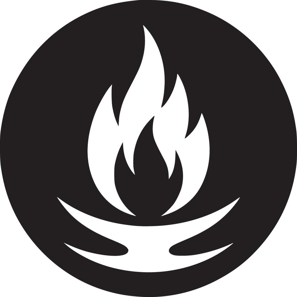 A graphic of a white flame icon inside of a black circle on a white background in simple style Pro Vector