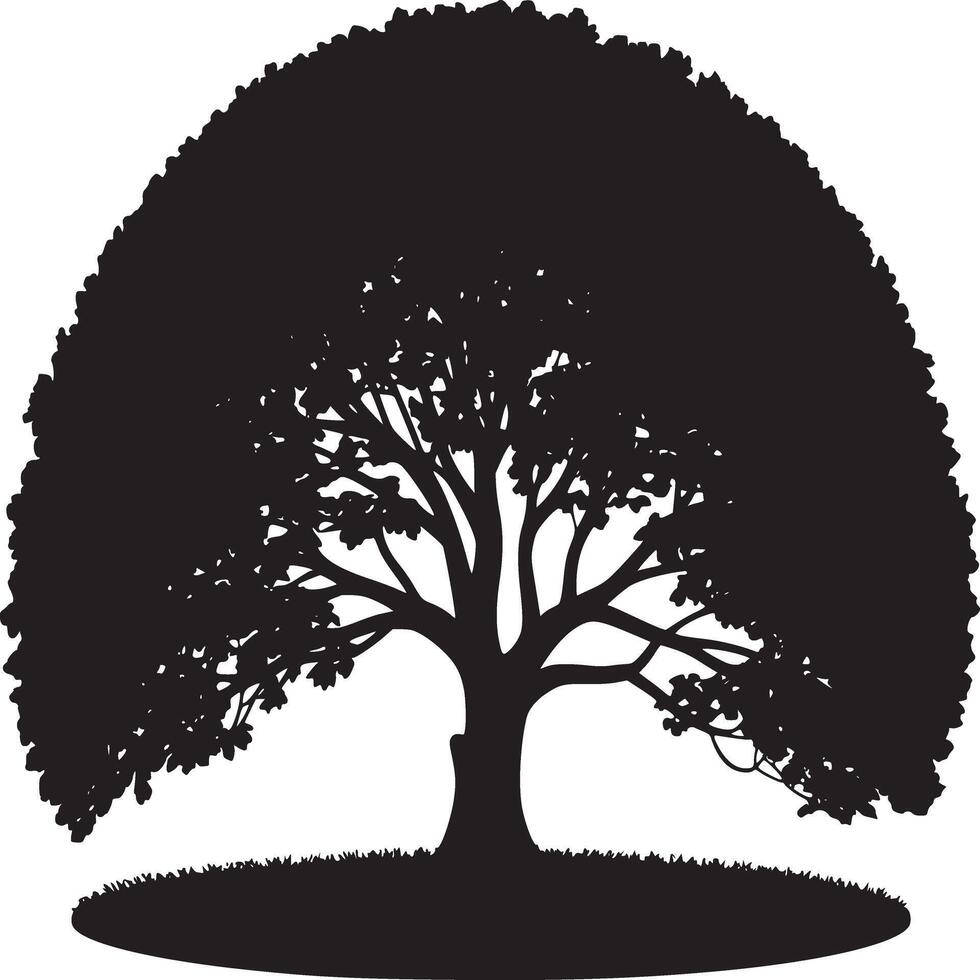 A silhouette of a tree with a rounded canopy and grass at the base on a white background art Pro Vector