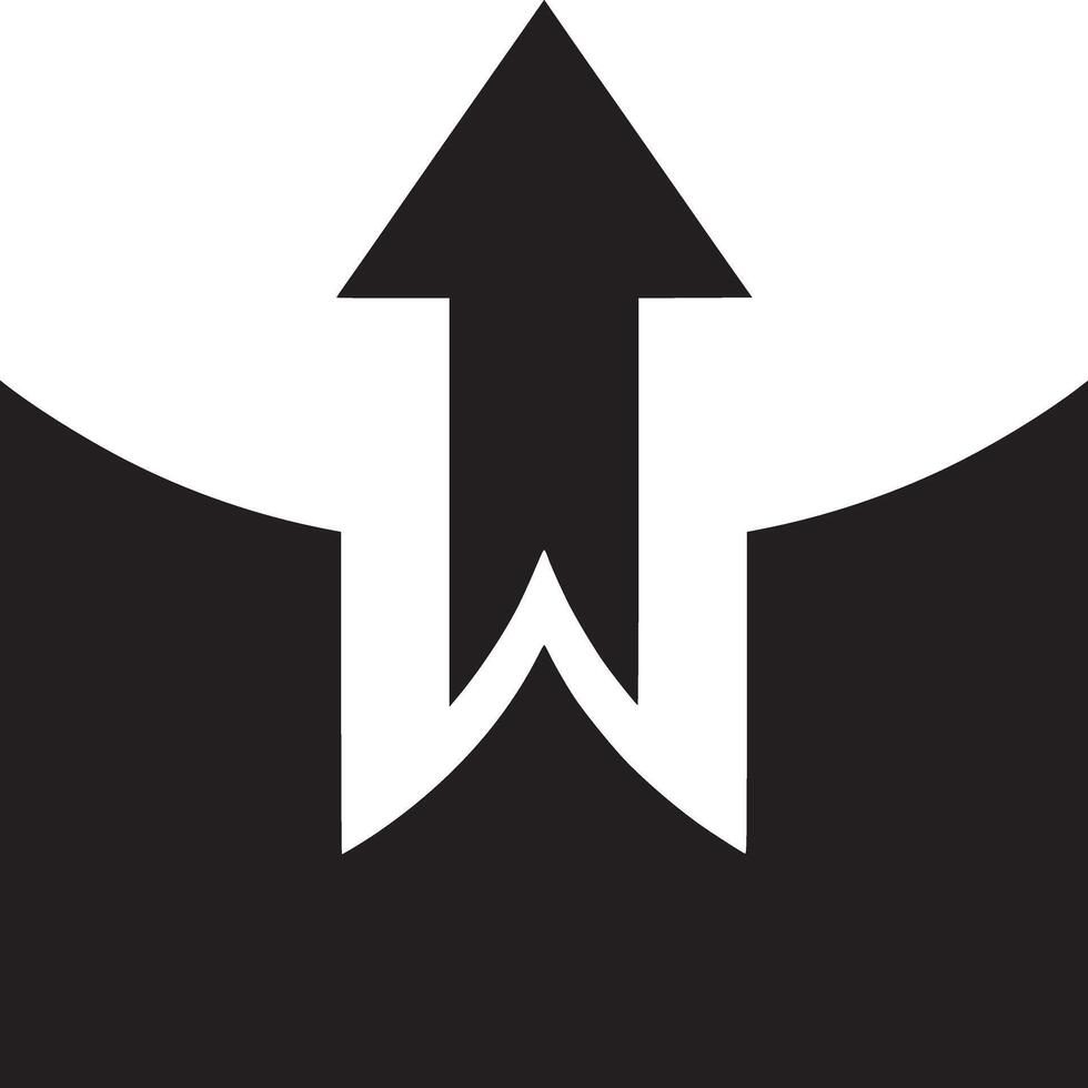 A graphic of a black arrow pointing upward with a white background and black curved shapes below it Pro Vector
