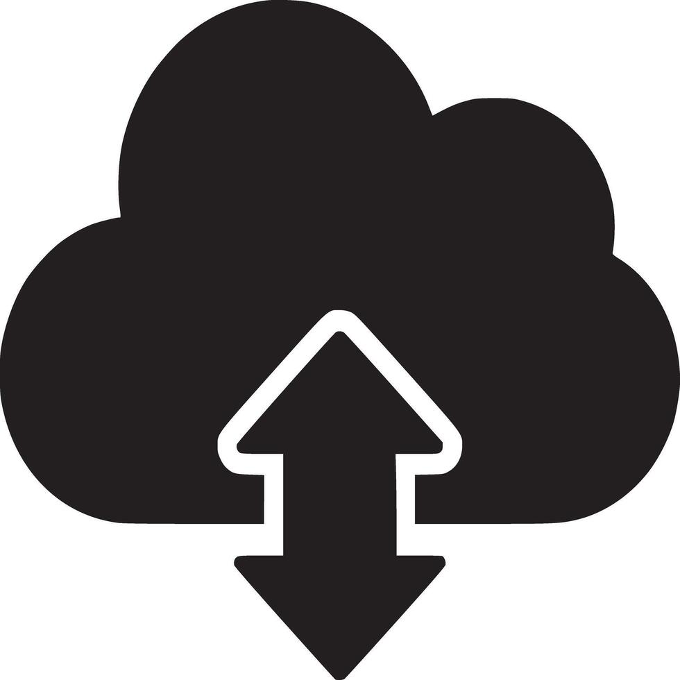 A black cloud with an arrow pointing up and down on a white background in a simple graphic style Pro Vector
