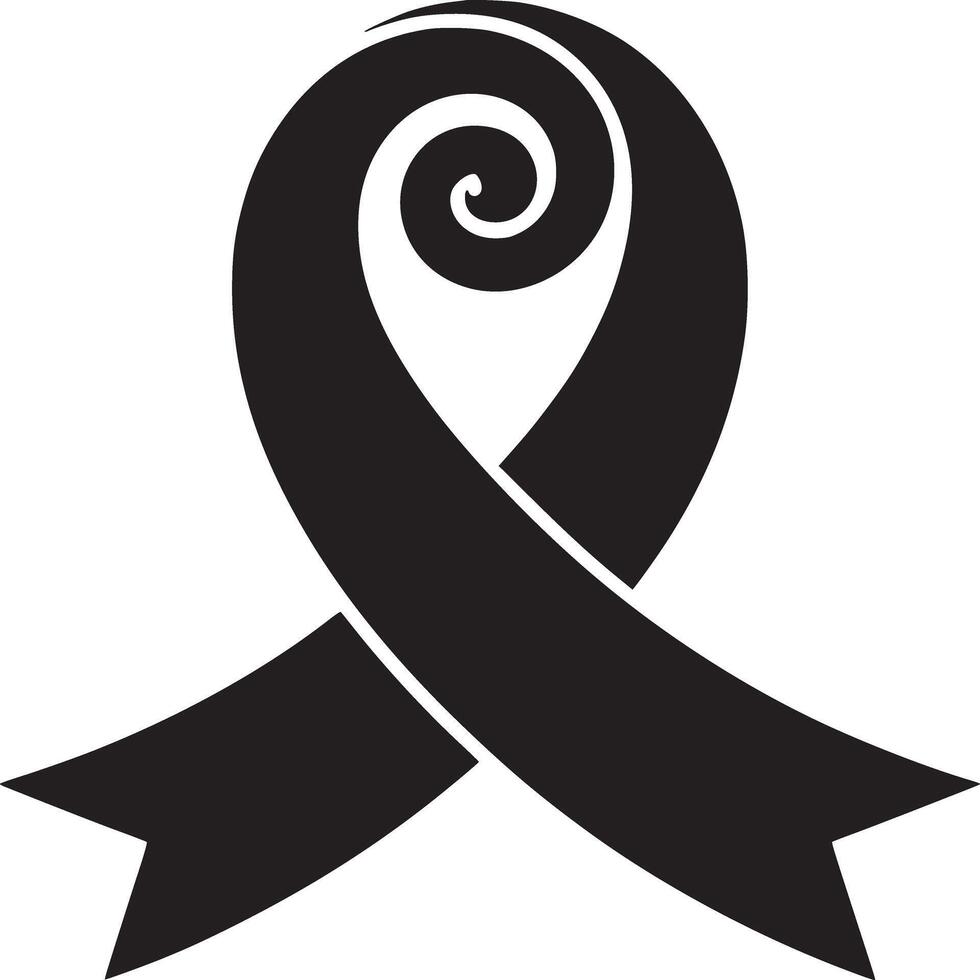A simple black ribbon with a curled top against a plain white background in a minimalist style Pro Vector