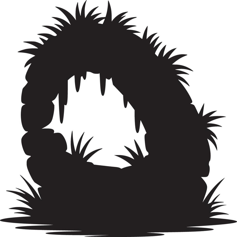 A silhouette of a stone archway covered in grass and vines against a white background backdrop view Pro Vector