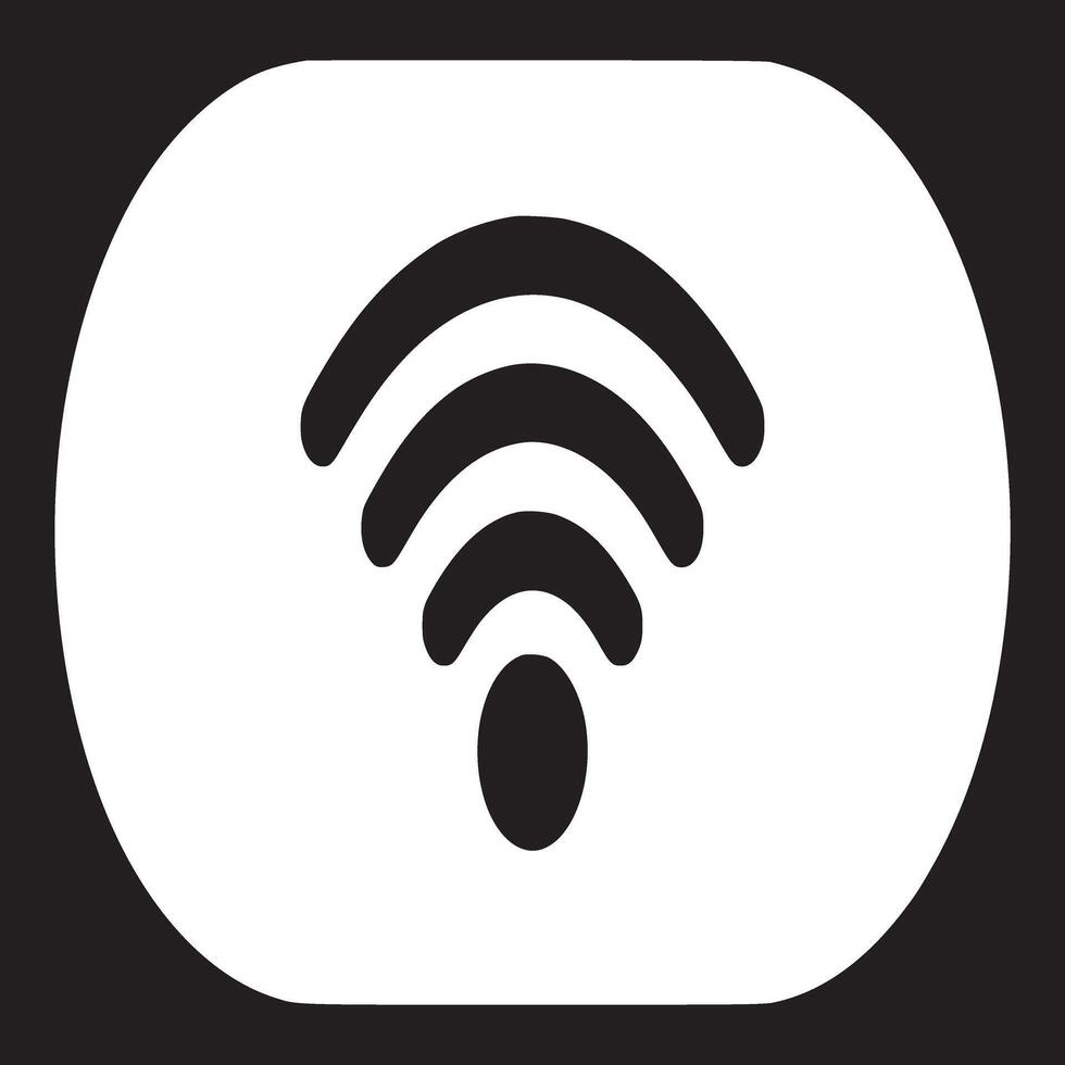 A wifi symbol in black on a white rounded rectangle against a black background in a simple graphic Pro Vector