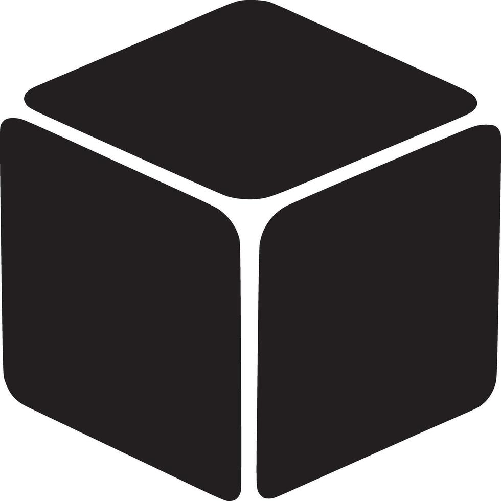 A minimalist black cube with rounded edges isolated on a white background in simple graphic style Pro Vector