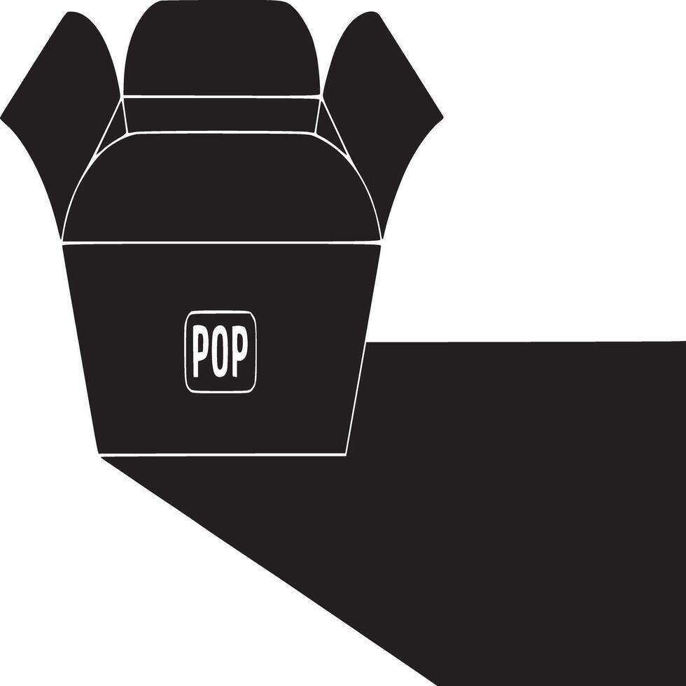 A black and white graphic of a popcorn container with the word pop on the front and a shadow cast Pro Vector