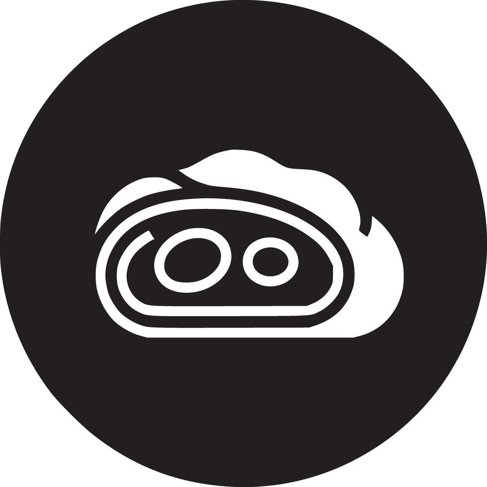 A black circle containing a white abstract shape with two circles inside on a white background Pro Vector
