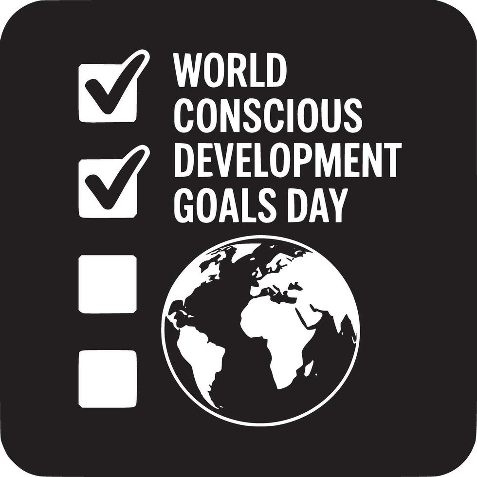 World conscious development goals day graphic with globe and checkmarks on black background square Pro Vector