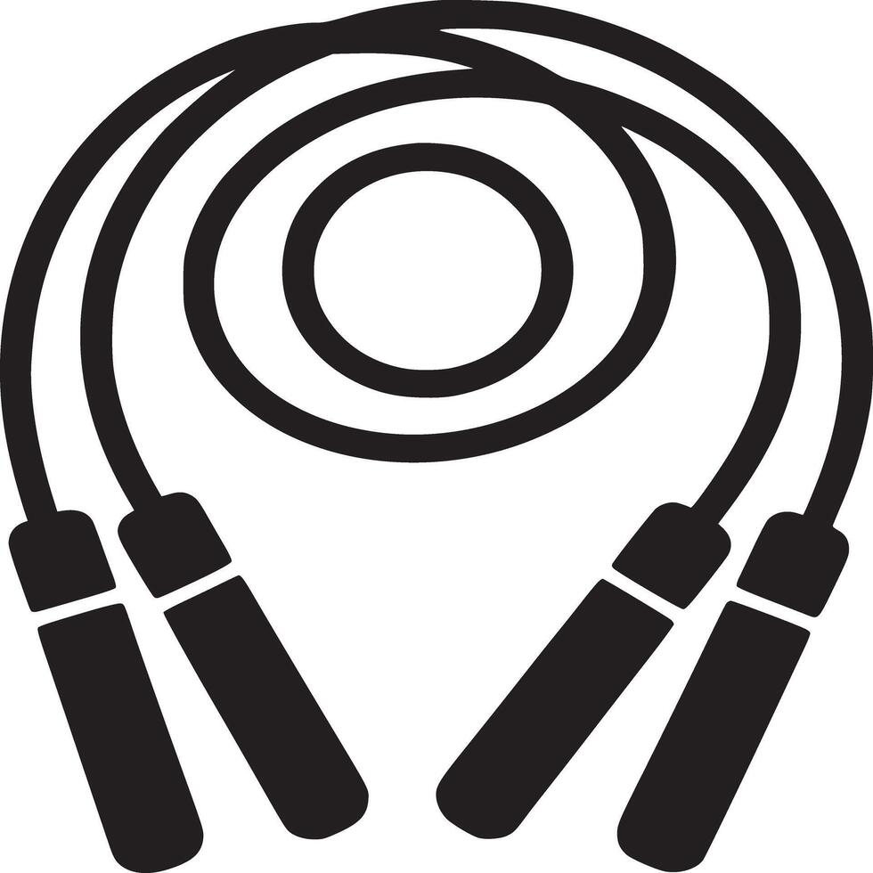 A black and white graphic of a jump rope with handles and a coiled rope in the center on white Pro Vector