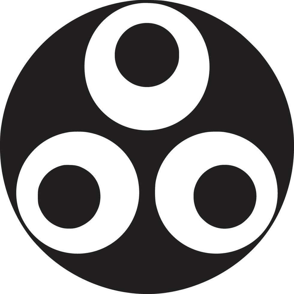 A graphic design featuring a black circle containing three white circles in a triangular arrangement Pro Vector