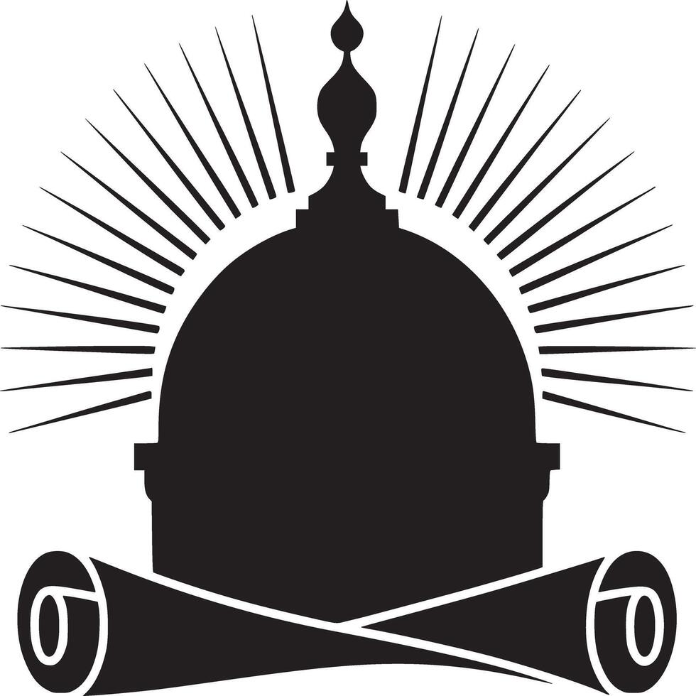 Silhouette of a dome building with radiating lines and a scroll on a white background design Pro Vector