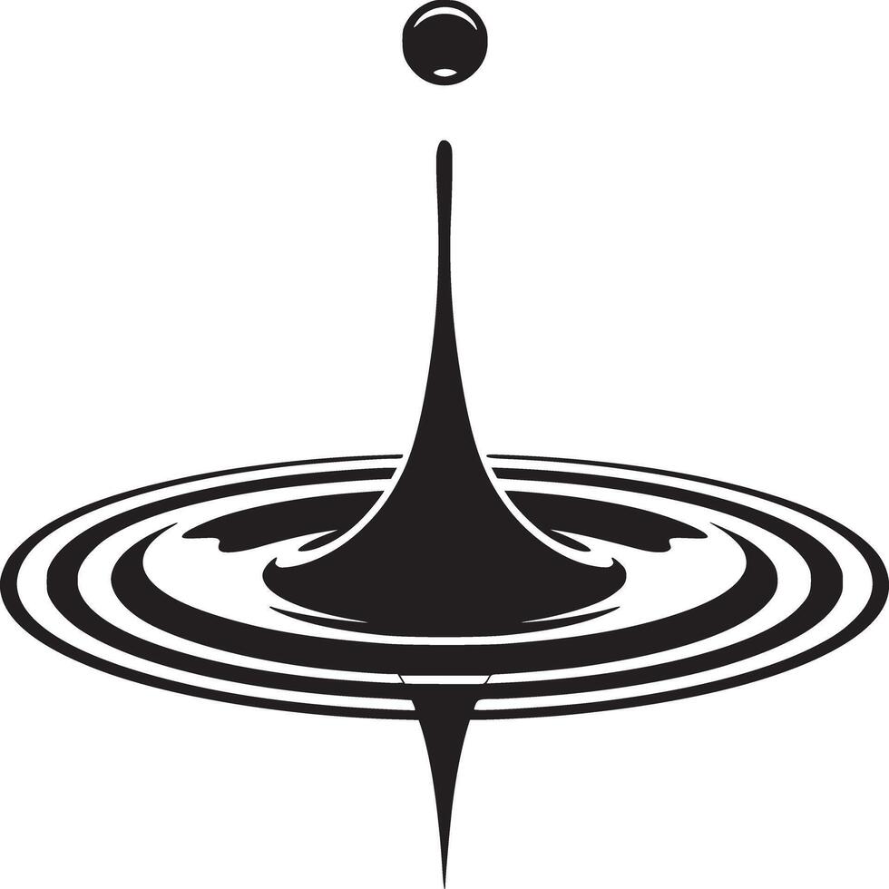 A black and white image showing a drop of liquid falling into a pool creating ripples in the water Pro Vector