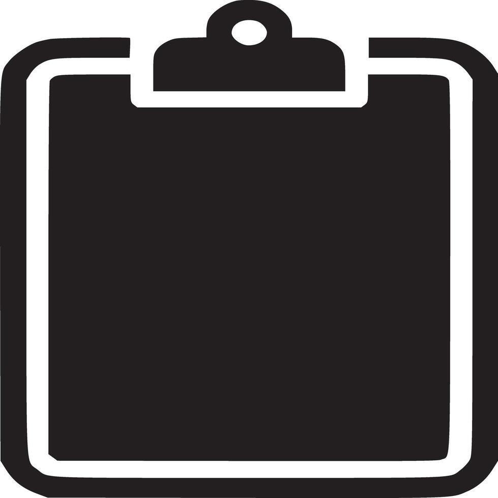 A simple black and white illustration of a clipboard with a blank space for content display Pro Vector