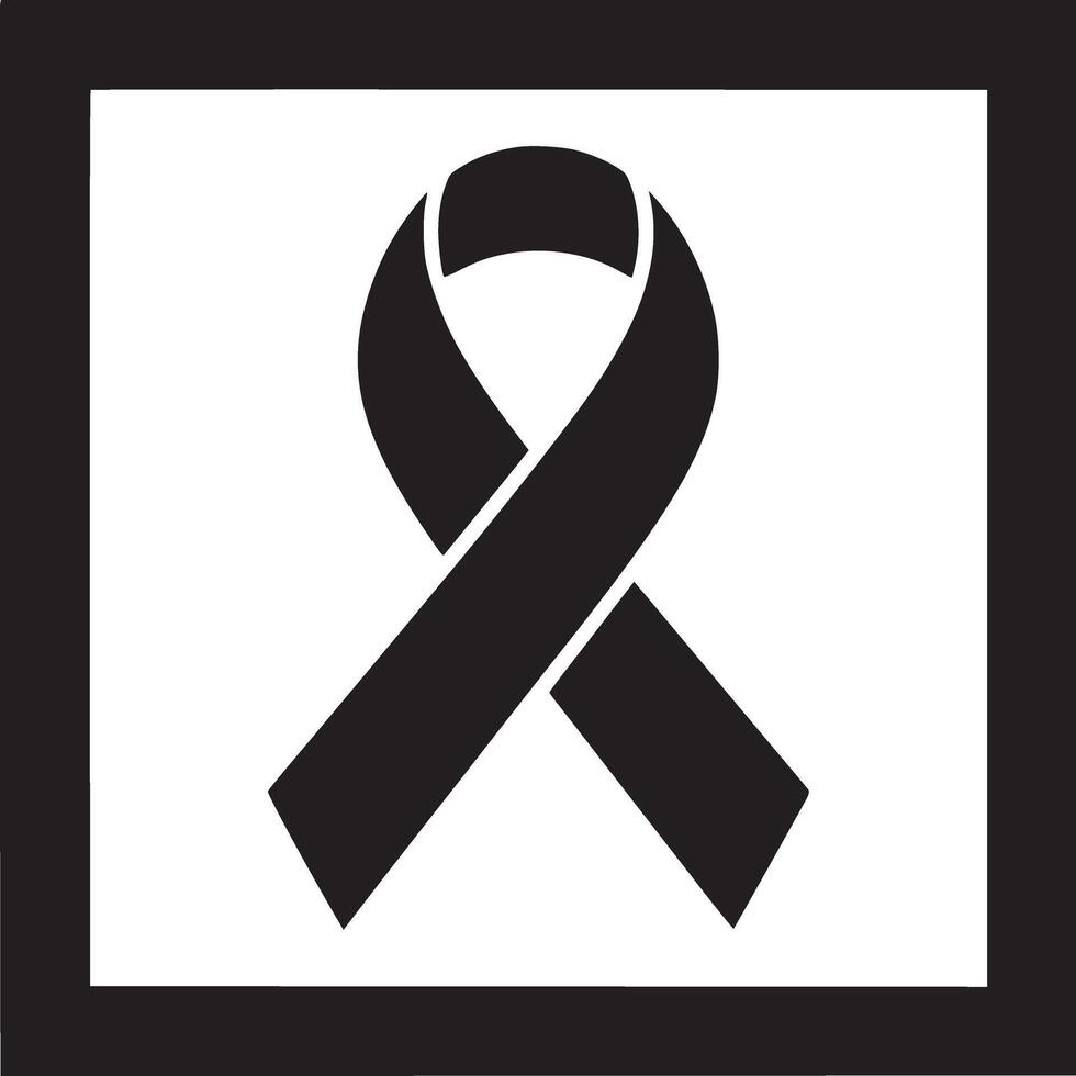 A black awareness ribbon centered within a square frame on a plain white background simple design Pro Vector