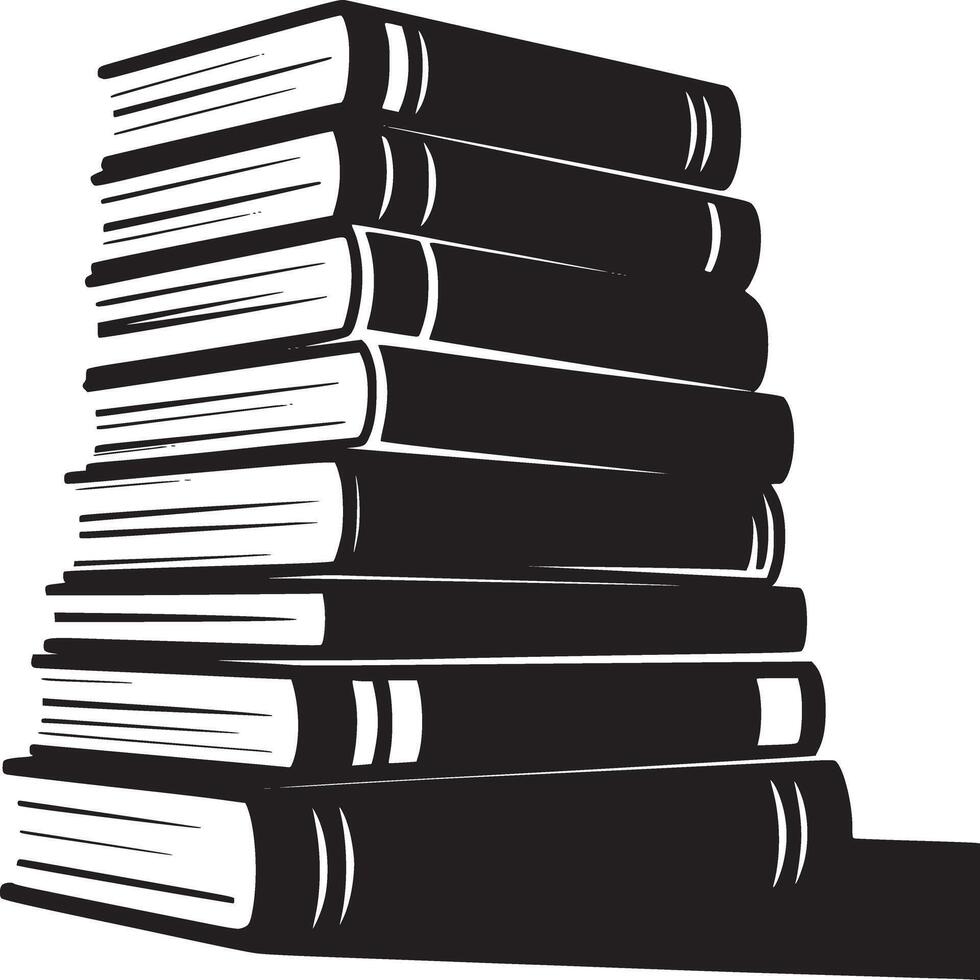 A monochrome stack of books with a simple black and white design on a plain white background view Pro Vector