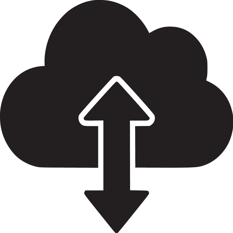 A black cloud icon with an arrow pointing up and down indicating data transfer on a white background Pro Vector