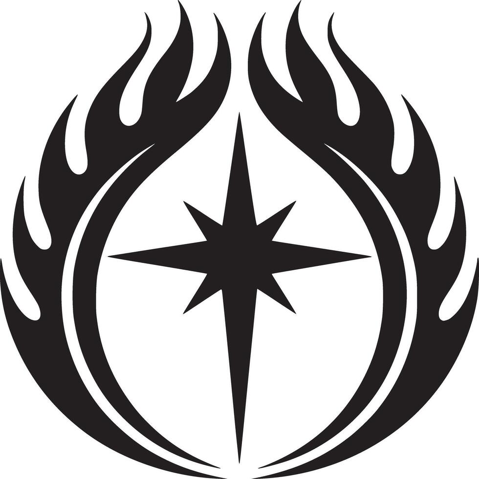 Black star with flames design on white background a simple yet striking visual element concept Pro Vector