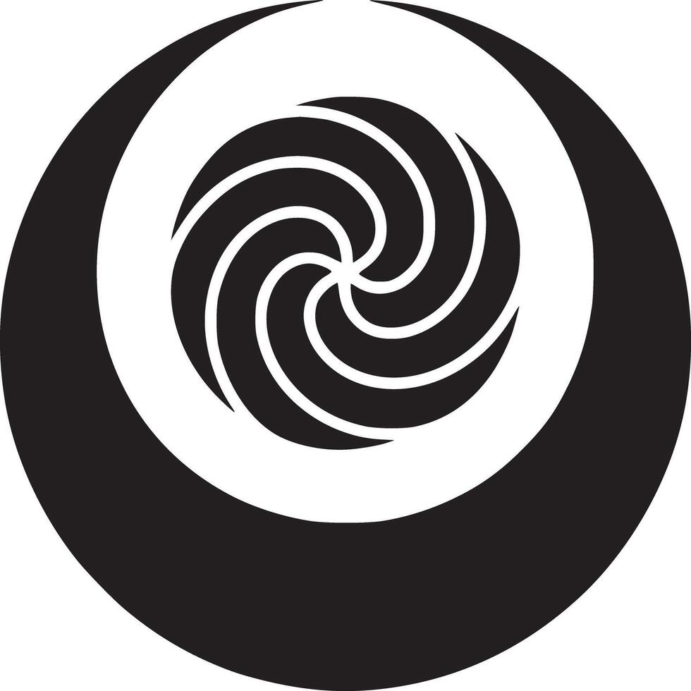 A graphic design featuring a black spiral within a crescent moon shape on white background center aligned Pro Vector