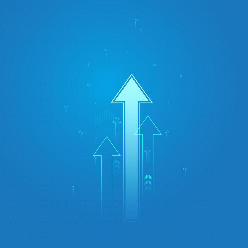 Groups of blueArrows growing up on light blue background with multiple upward-pointing arrows, symbolizing growth, progress, and positive trends, illustration Pro Vector