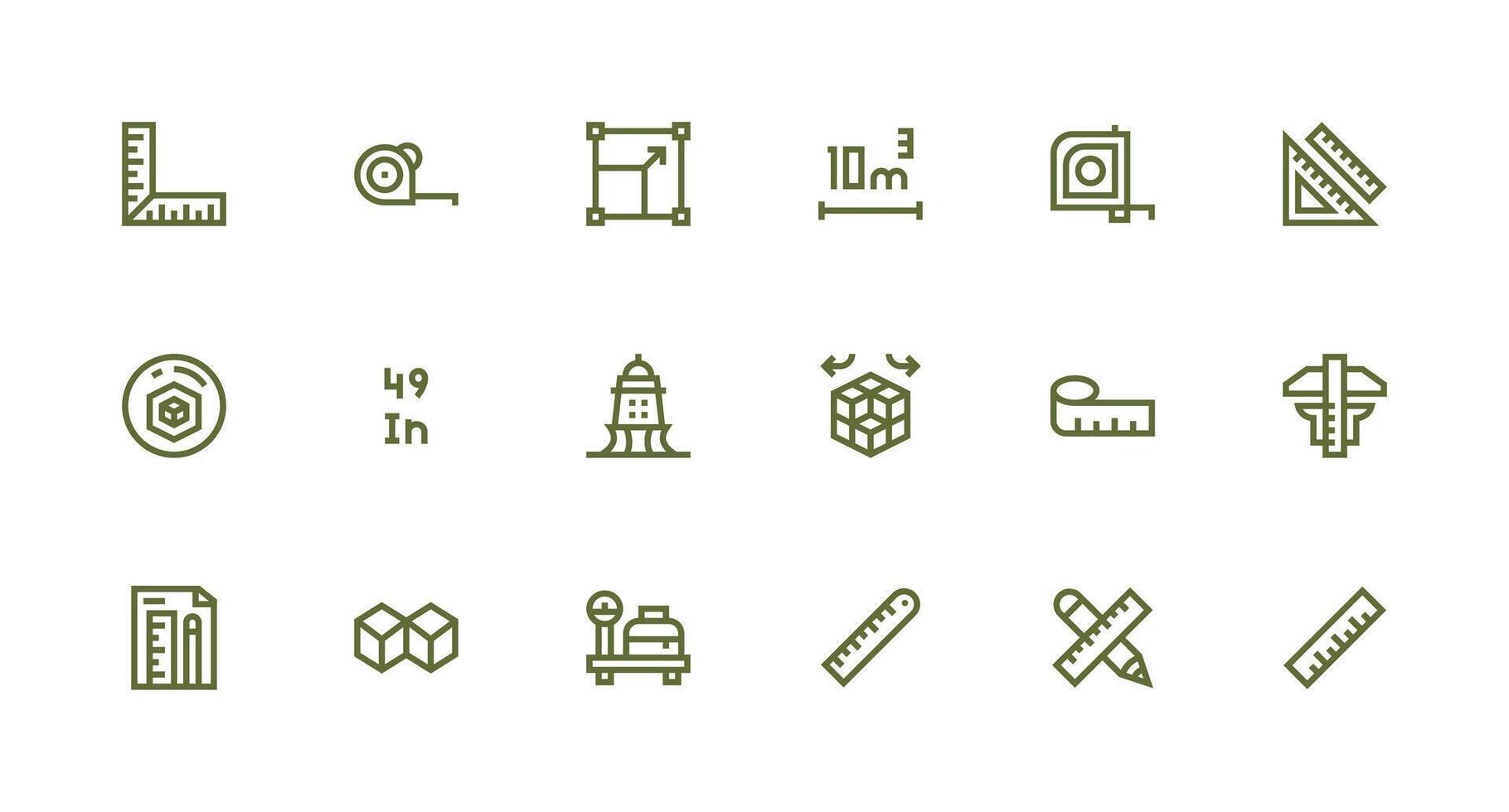 A set of green line icons that include various objects vector