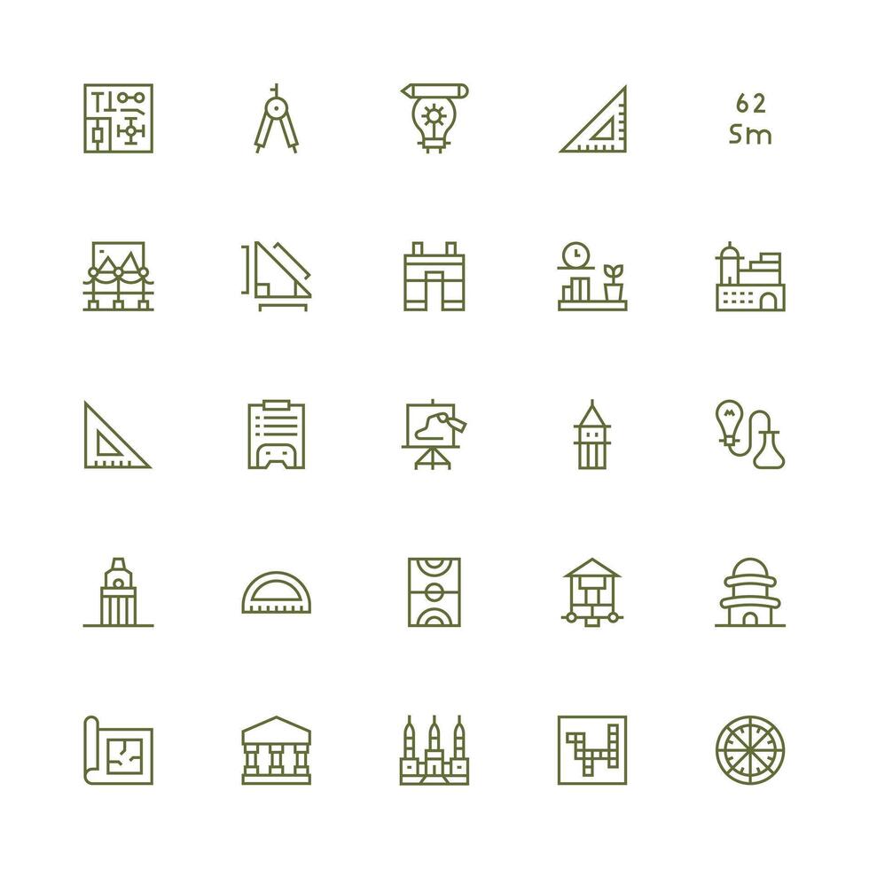 A set of green line icons that include buildings, buildings, and other objects Free Vector