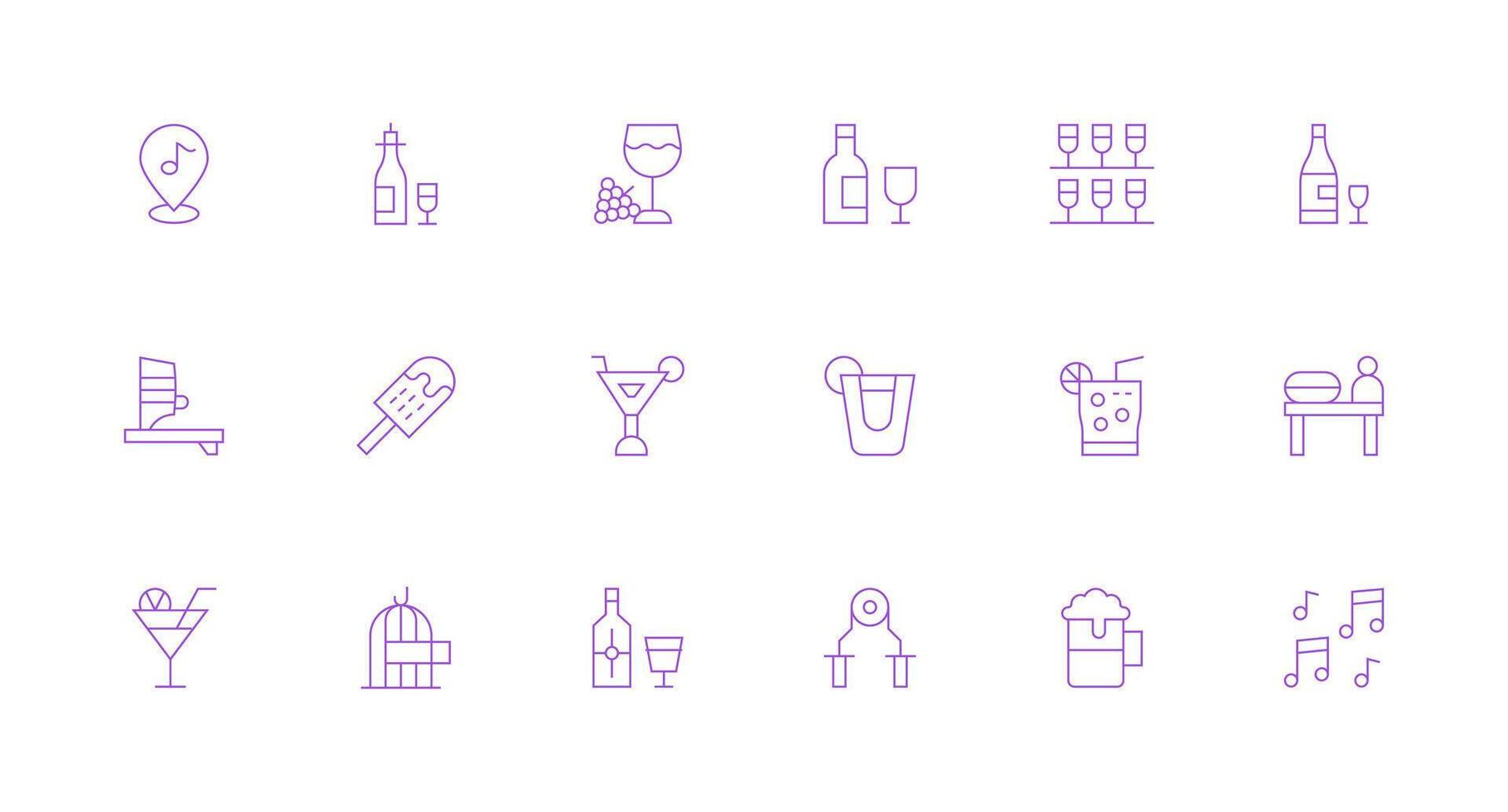 Bar Icon Set with 18 Minimal Line Graphics Free Vector