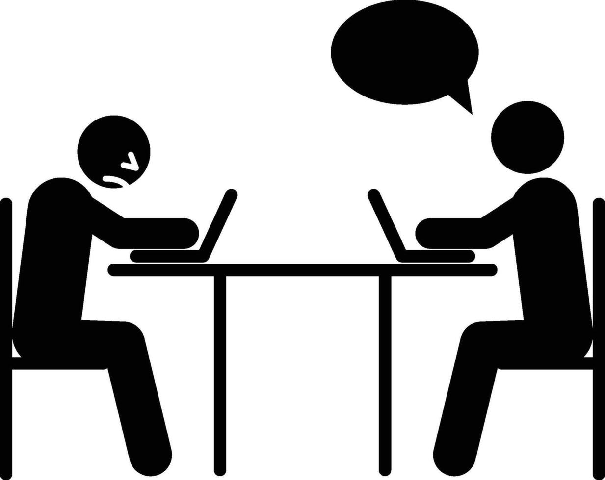 two people, table, laptop icon. Simple glyph, flat of People icons for UI and UX, website or mobile application on white Pro Vector