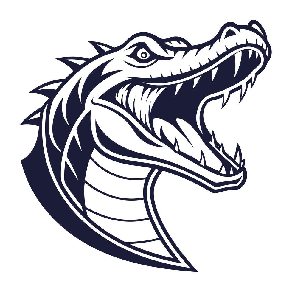 A bold graphic image of an alligator's head showcases sharp teeth and a fierce expression. Capturing its power and predatory nature through the use of clean lines and striking contrast. Pro Vector