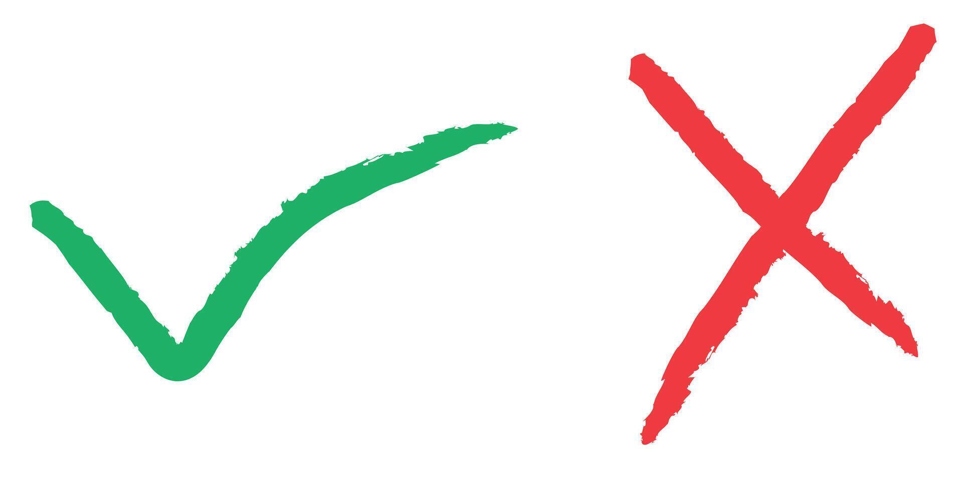 Green check mark and red cross isolated on white background for validation Pro Vector