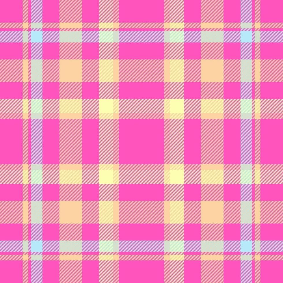 Vibrant plaid pattern with intersecting stripes of pink, yellow, and blue. Playful, retro, and suitable for fashion, design, or background use. Versatile eyecatching. Pro Vector