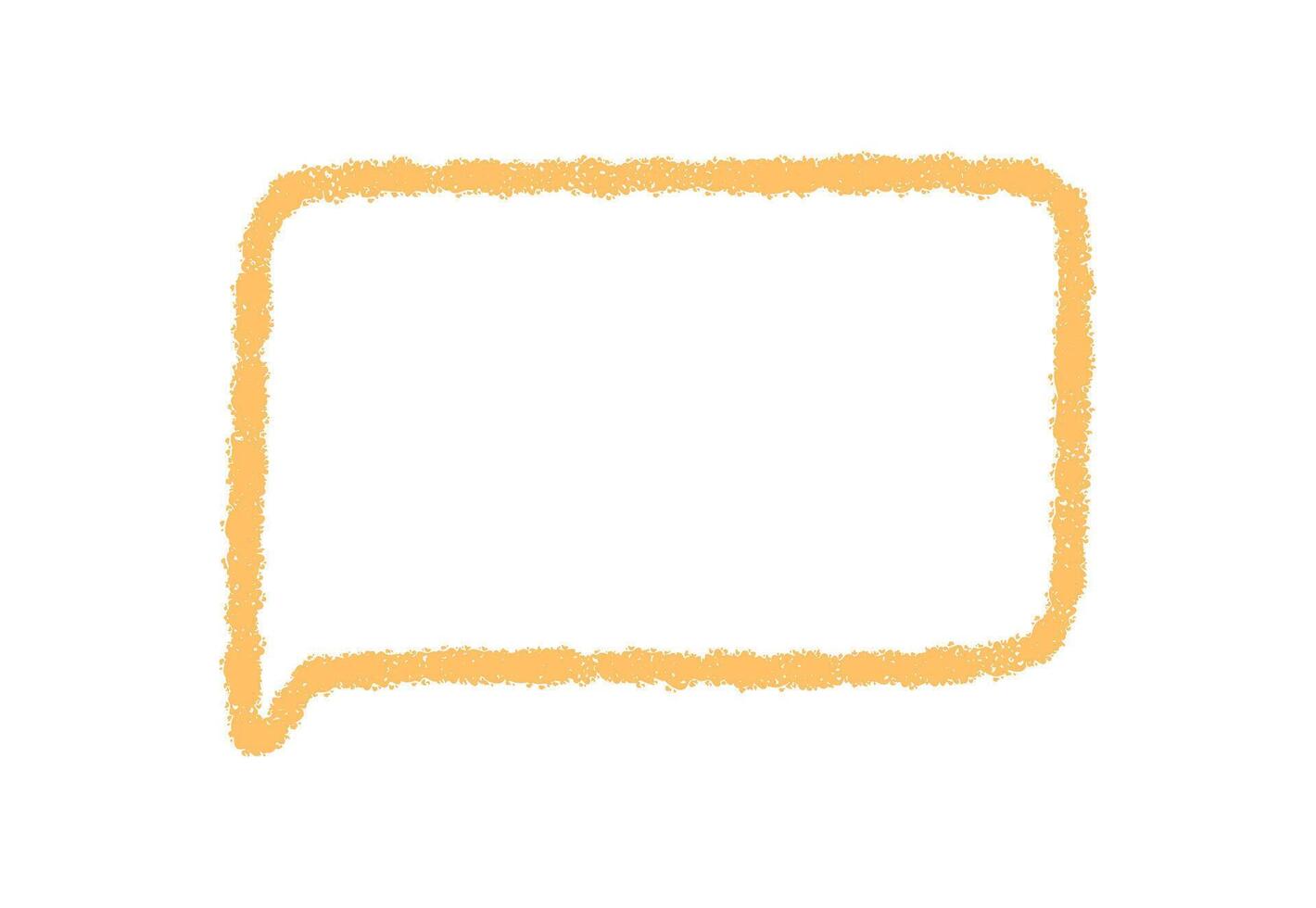 Chalk speech balloon in orange with rectangle outline and hand drawn organic style. Chat and conversation message, comment outline with graphic element for text or dialog. Pro Vector
