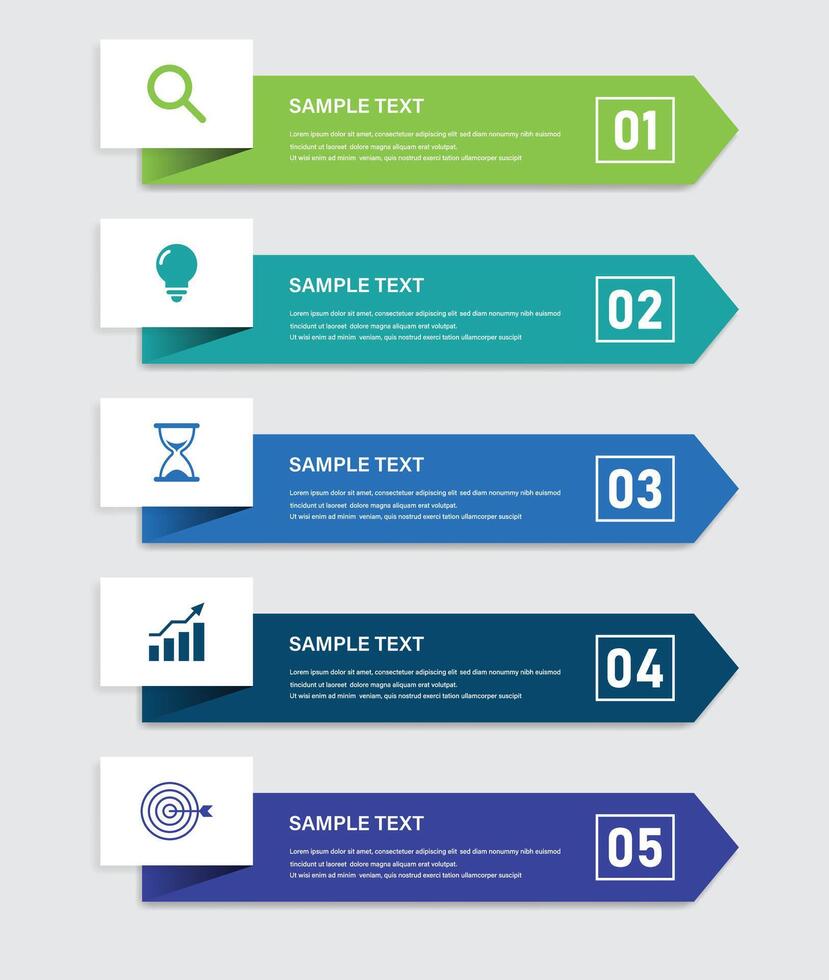 Modern 5 Step Infographic Template with Icons and Arrows for Business Presentation or Workflow Design Pro Vector