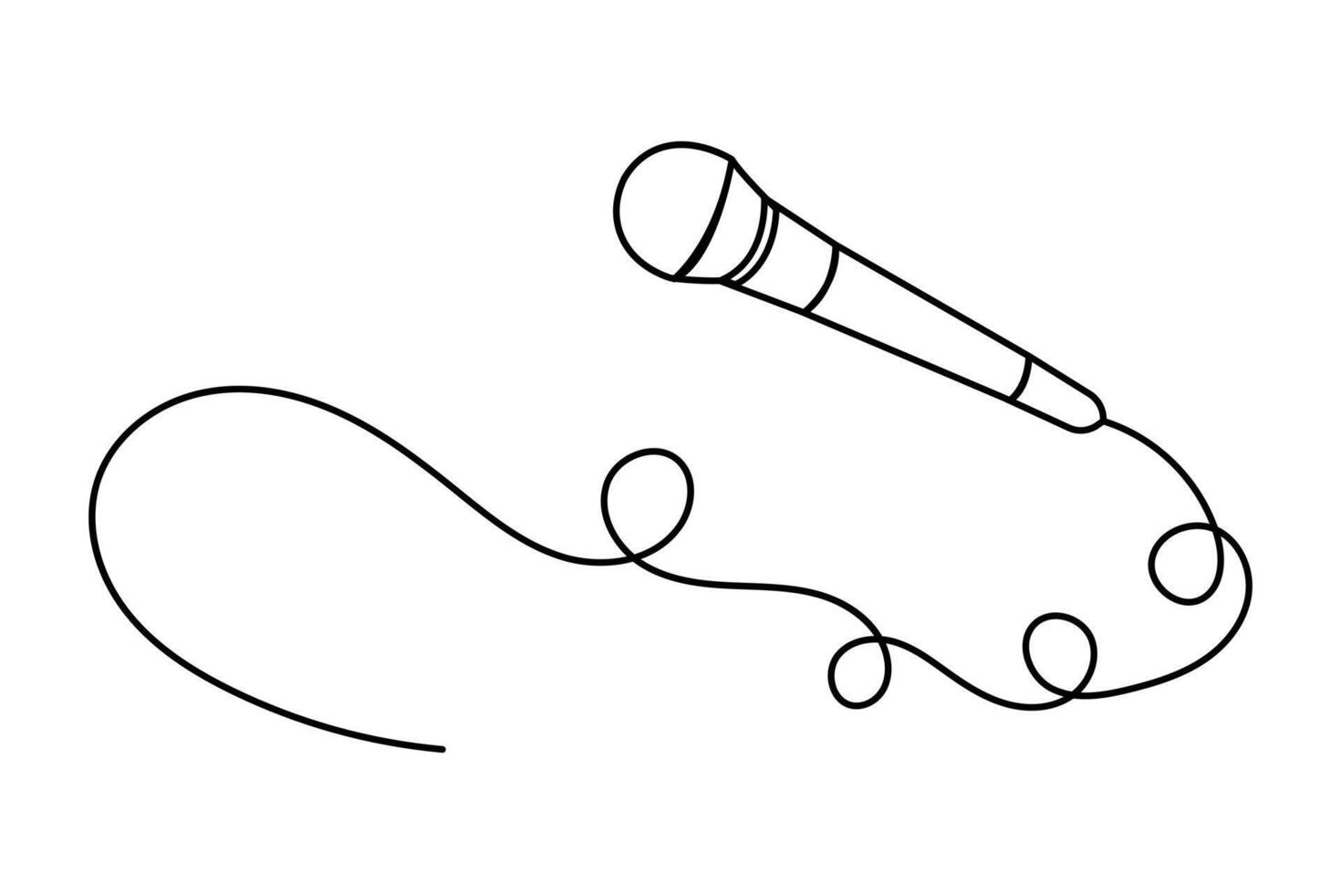 Continuous line microphone drawing minimal art outline isolated illustration for background Pro Vector